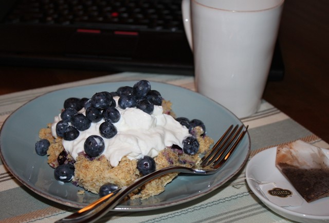 I enjoy starting my day out with hot tea and a blueberry muffin. Often I use frozen berries, but there is one time during the summer when our local U-Pick makes a run to Michigan. You can pre-order the 10 lb boxes of fresh picked, large and sweet blueberries.